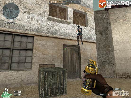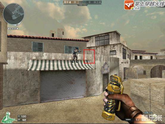 相信玩沙漠-1的小伙伴们都对中房(中厅)都有很深的概念。当双方势均力敌时,谁占住了中厅基本就握住了主动权,攻可飞主道,退可协防密连。因此,中厅也成为必争之地。上图的点位即为反制中厅的绝佳位置。跳跃方法就是借助上图中的小箱子。