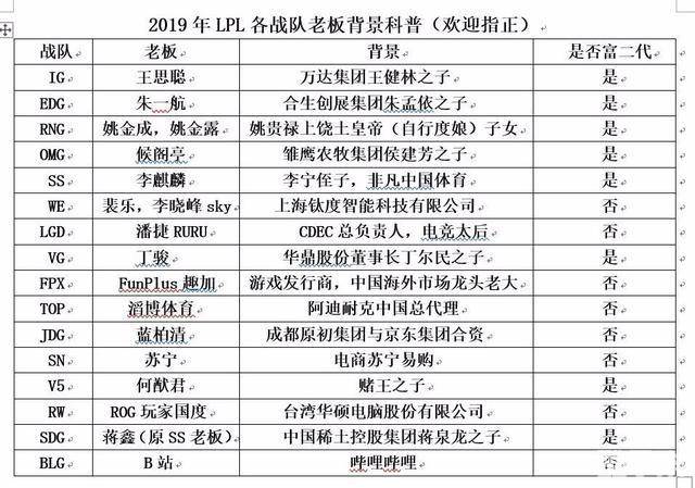而近期就有一个表可以说在撸圈传疯了。其中就列举了LPL十六支战队的老板,而这些老板不仅仅有雄厚的财力支持,背后还有很多财团。就之前的RW从买下LPL席位再到后来的买选手,搞相应的配套设施,实行了一年就有点招架不住了,由此可见电子竞技真是没有点实力不能碰的存在!
