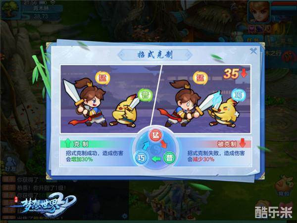 初入梦想大陆,少侠们体会最深的就是招式克制系统了,通过生动的动画展示一目了然。