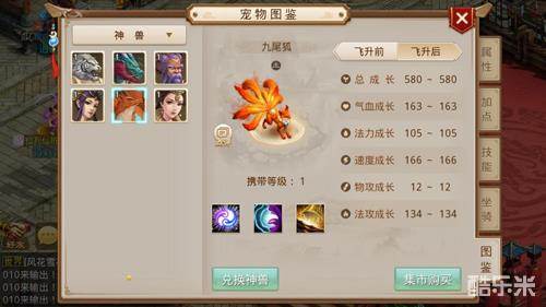 就属性而言,九尾狐的速度和想象中的一样是最快的,飞升以后达到了惊人的166。当前游戏中最快的神兽朱雀速度仅158,和变异老鼠相同。