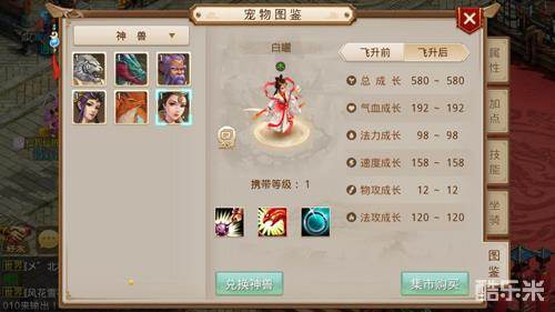 白矖不仅颜值出众,属性也不弱,是个在体敏两端都非常出色的宠物。飞升后的气血成长高达192,速度也达到了158。