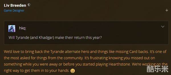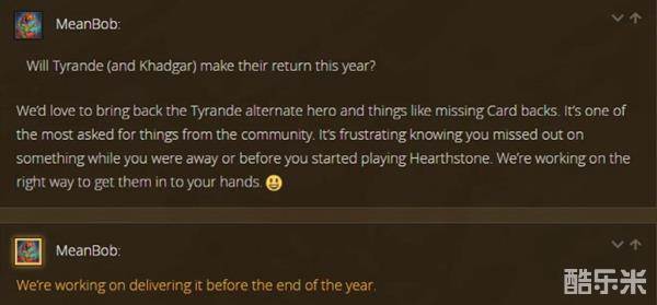 炉石传说蓝贴:泰兰德今年回归 至暗时刻被观察
