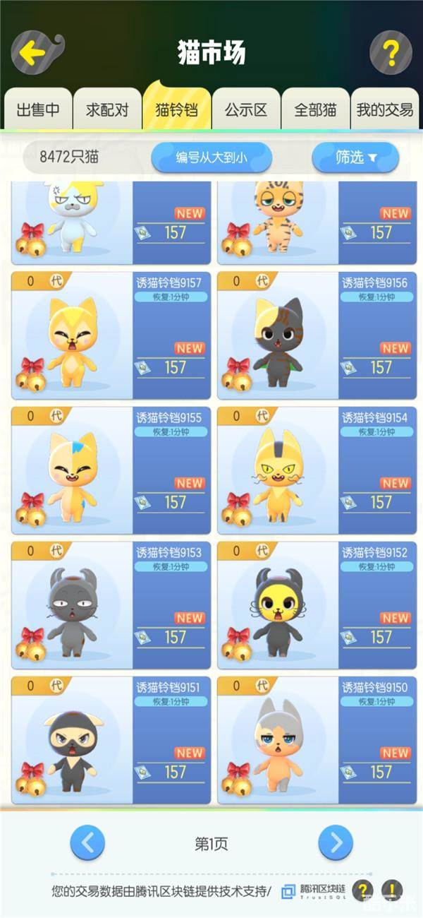 猫咪基因的获得除了繁育之外,也可以通过区块链交易市场购买获得。一起来捉妖的交易市场中运用了最新的区块链技术,通过区块链技术每位御灵师都可以从海量的猫咪基因挑选自己想要的专属猫基因,并且保证猫咪数据的独一无二。