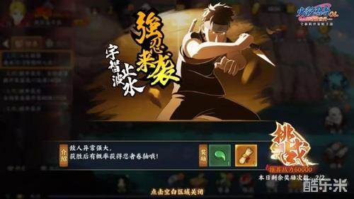 在强忍降临活动界面,使用忍者卷轴即有机会抽取到宇智波止水碎片或忍者精华等奖励!左下角每天还会有免费礼包可以获得,大家可别忘了领取!