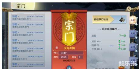 玩家15级系统将开启宗门系统,玩家可在界面一键申请进入宗门,同时也可以精确搜索宗门进入;