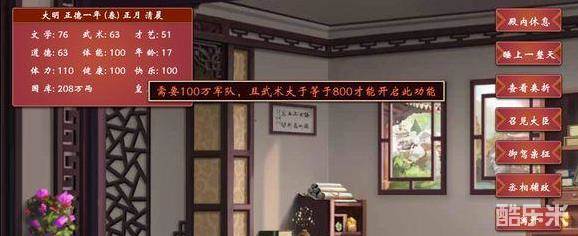 1.昏君路线——御驾亲征消灭鞑靼,然后打道回府,带着敌军攻击力-1和名妃概率+1的buff,在后宫的松竹馆内夜夜笙歌。