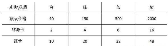 特殊价格:由于各种原因所导致的一些比较常见的价格,白,绿卡价格较低,通常在购买的时候都会选择直接购买,而不进行竞价,蓝卡购买的卡牌通常都是比较火热的卡牌,所以价格普遍在700-1000这个区间,紫卡拆技能的时候,我们通常能够收取到1500左右的便宜紫-源卡。