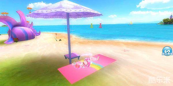 海边有许多可爱的沙滩垫,点击就可以躺上去享受日光浴~