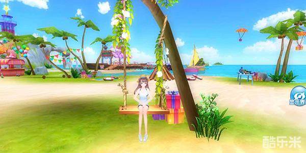 《梦幻炫舞》首次开放的主题休闲社区是浪漫海岛,蓝天白云,椰林树影,水清沙幼,风景非常漂亮,是约会胜地的不二选择哦~!