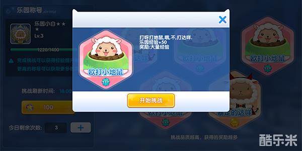 在日常活动游乐园里,完成殴打小达咩,哦不,殴打小地鼠的游戏,能获得不少经验呢,完成更高难度的殴打小地鼠,获得的经验也会越多。