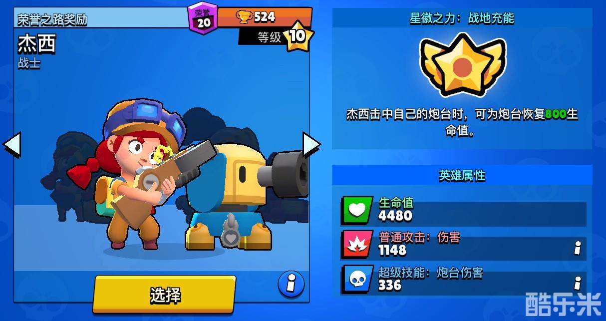 杰西的Star power是普攻可以治疗炮台且可以通过自己的炮台来传播电球,可大大增强炮台的生存能力并间接提高自己的普攻距离,强度很高。