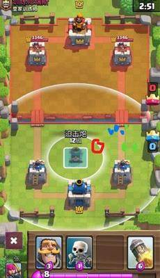 其次炮作为主力卡,如果开局防守炮,对面打一波小进攻,你解掉了,此时应该跟着解卡一起下炮,但是炮却没过出来,从而丢失了一个磨塔的好机会。