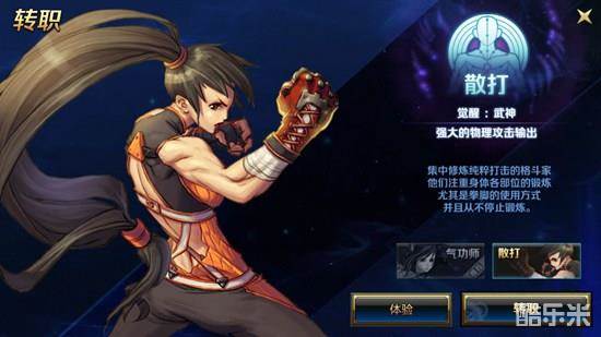 格斗家目前可以转职成散打或者气功师: