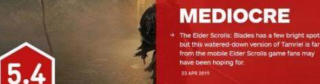 B社手游《上古卷轴:刀锋》开启公测已有一段时间,IGN今天公布了本作的评测并打出了5.4分,评测者认为游戏还是有部分亮点,然而这个大打折扣的泰姆瑞尔大陆和粉丝们期待的还是有很大差距。