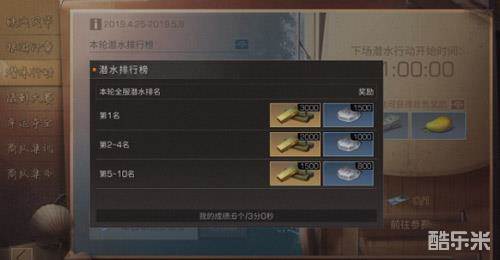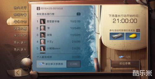 【比赛时间】首先这个活动是有时间要求的,在每天上午的9点,12点,下午3点、下午6点,晚上9点进行潜水比赛,我们需要在比赛开始前15分钟报名。