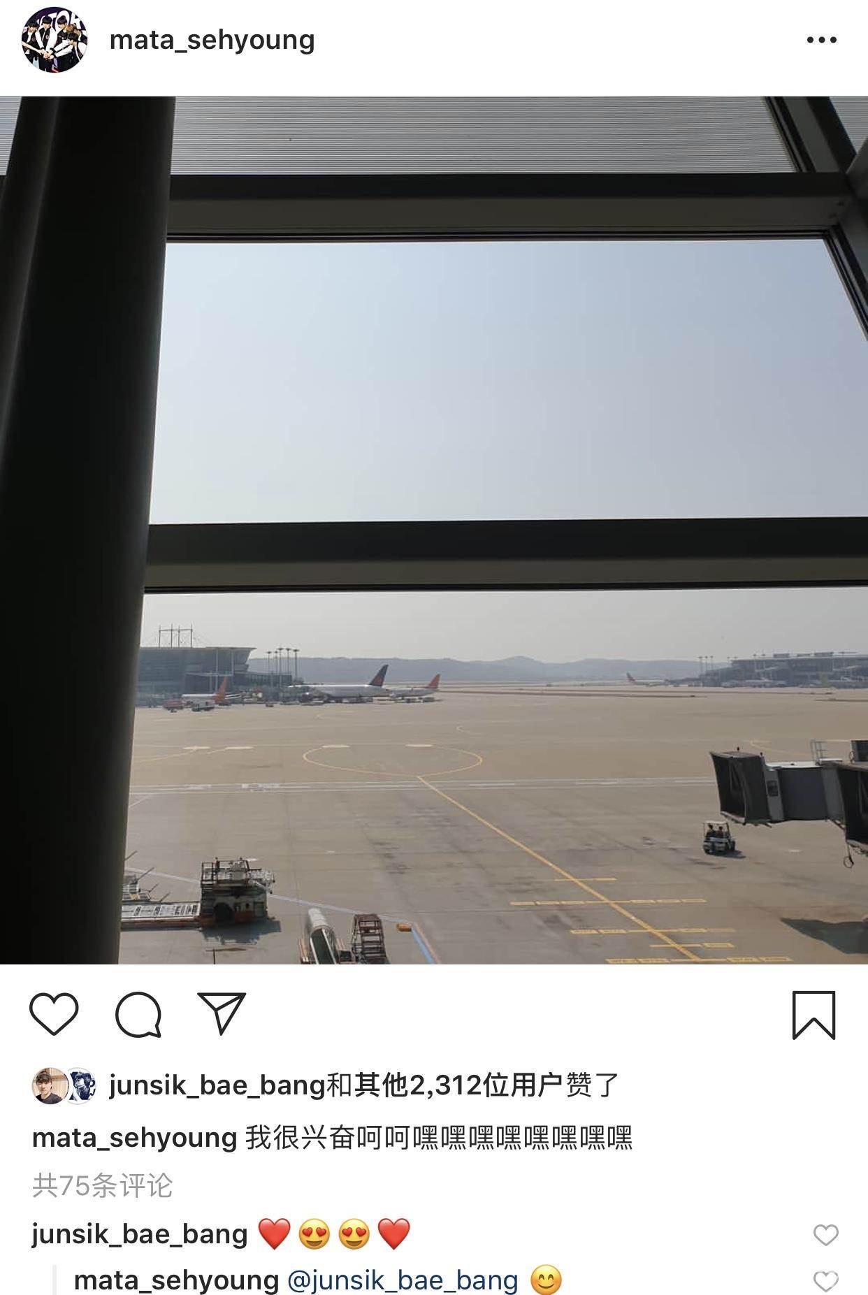 Mata连更两条INS表达了出发的兴奋之情,Bang点赞并评论表达了羡慕。