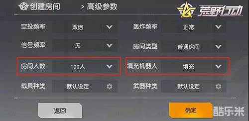 除此之外,游戏更新后,在房间中还增加了机器人AI,玩家可以在创建房间—高级参数—填充机器人选项,选择是否在房间中填充机器人。同时,房间人数也可选择100或200人,荒野精英们1V199的愿望也可以实现了!