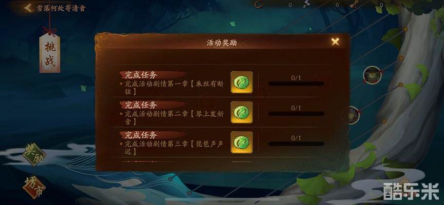 在本次“雪落何处寄清音”复刻活动中,备受降妖师们欢迎的“箜篌演奏模式”再度开启,降妖师们可以利用鹿蜀修复后的箜篌奏响天籁之音。在降妖师们攻略全新日常活动副本后,还可以获得玉璧、唤灵符等丰厚奖励以及金缠纱、银马鬃等活动材料,利用这些活动材料可以在坊市兑换限定SSR拓印“冰弦泛月”。与此同时,“青黎铸宝·鹿蜀复刻”限定任务也已开启,更多青黎玉等待降妖师们前来收集。