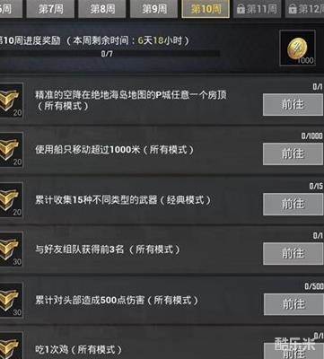 绝地求生刺激战场S6赛季已经正式开始,同时赛季挑战任务也开始挑战。这边来看看绝地求生刺激战场S6赛季第十周挑战任务攻略大全。