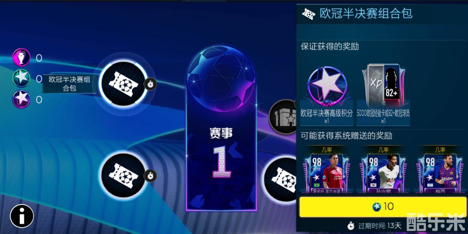 进入游戏点击主界面“欧洲冠军联赛-半决赛”,进入本活动。