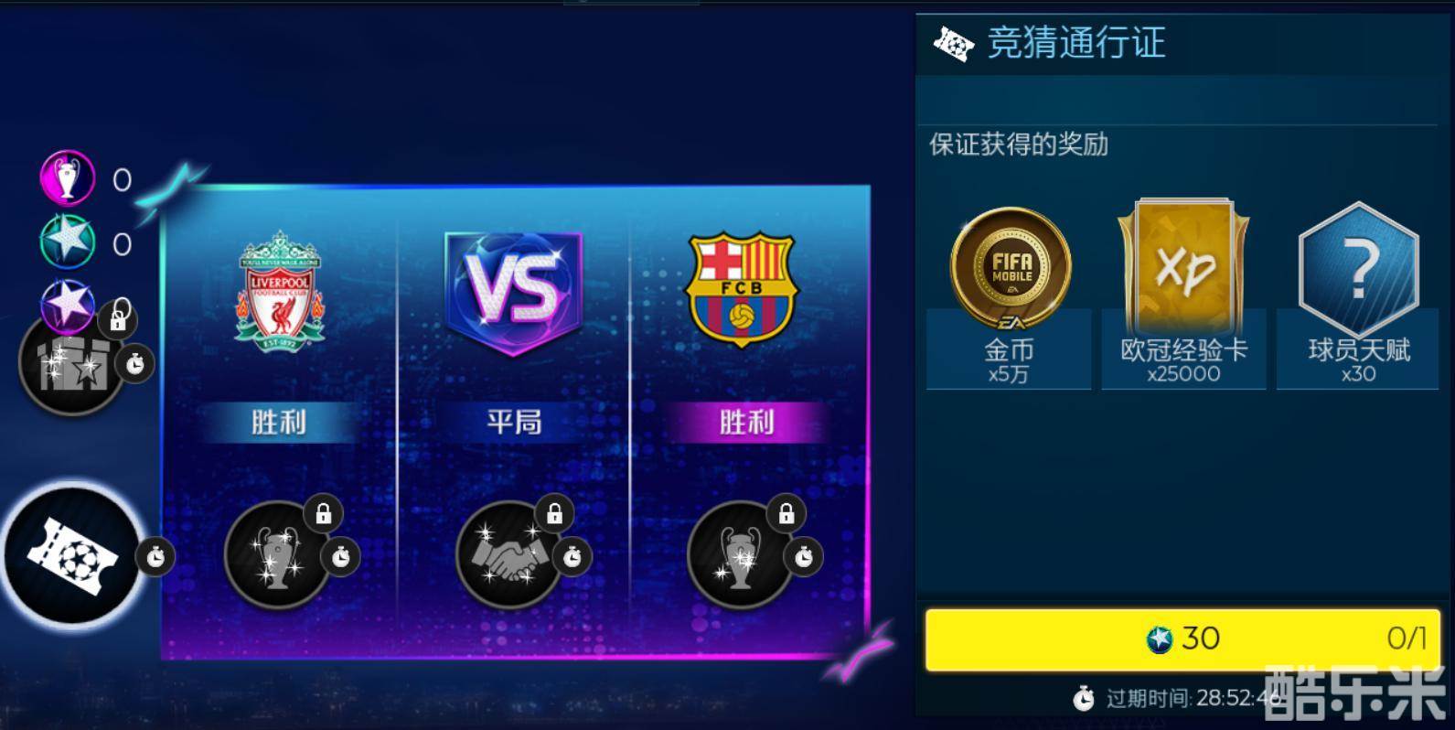 同时,在本章节玩家可以进行半决赛的竞猜活动,先通过在主章节里获取的半决赛积分兑换一次奖励通行证,然后才可进行半决赛单场的比赛竞猜,竞猜正确后,还可获得丰厚的竞猜奖励——欧冠赛事积分,每场比赛的竞猜将在比赛开始前三天开启,于北京时间比赛开始前一天的23点59分59秒截止,玩家一定要留意起始时间哦!