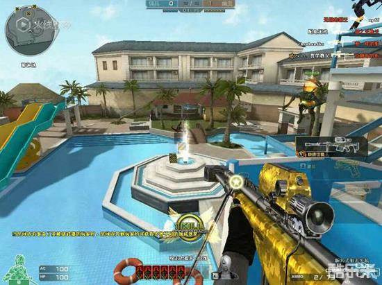 生化酒店想必大家一定都很熟悉了吧,它在正服中也相当火热,明亮令人惬意的酒店美景明显与其它黑暗风格的生化地图不同。生化酒店共有螺旋滑梯,滑梯和屋顶三大守点外加一个喷泉,由于视野比较开阔,特别适合撸炮的玩家。地图整体来说不算太大,要是30名玩家一起出现的话就感觉有点拥挤了,当然要是出现新生化酒店的话也可能会在地图中扩建一部分。