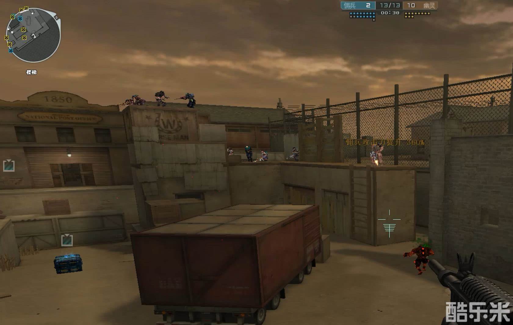 高塔顶部这里,可以说是四面临敌。在一定程度来说,如果不注意后面是很容易被变异的终结者丢炸弹丢死的。但是这是一个相互配合的游戏,正是因为四周都比较空旷,所以才安全。站在制高点的地方,视野一般都是比较空旷的,所以拿着加特林和大炮在这个位置刷分是非常不错的一个位置。