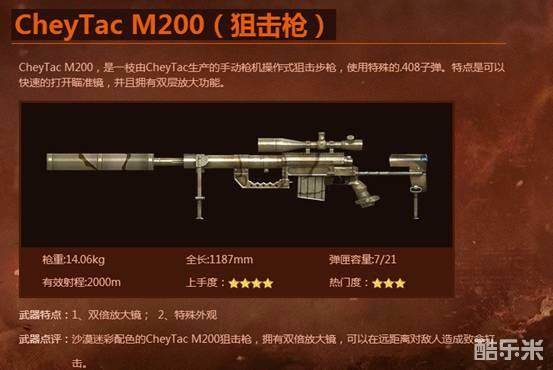 嗨咯,各位小伙伴们大家好呀!我是你们熟悉的小编青空。M200这款狙击枪相信大家都不陌生吧,这款狙击枪是在2014年上半年的《元首铁骑》版本中正式跟我们见面的。