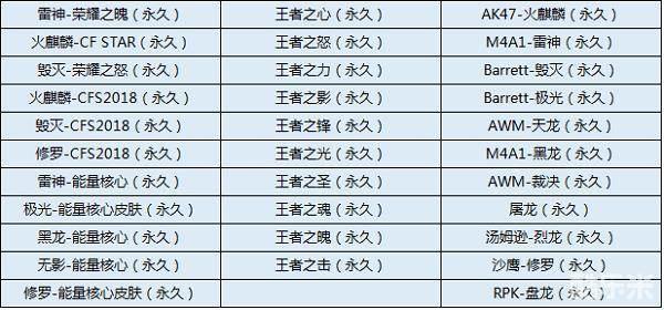 王者系列武器从出世以来,一直深受CFer玩家喜爱,黄灿灿的外观,仅活动可获得,真正的土豪金,堪称土豪专属。英雄武器则为高玩必备,更好的属性适合追求极致的选手,多样化的选择适合每一位CFer。永久皮肤中,赛事系列最为酷炫,CFS2018系列首次回归,荣耀系列可谓经典,这些皮肤是收藏家们不能错过的。猜对14场的奖池中,每一项奖励都很有价值。希望你是被幸运眷顾的那个人,得你所爱!