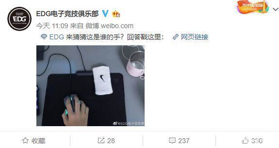 而就在上午,EDG官博又更新一条微博,放出一张图片,让大家猜猜是谁的手。