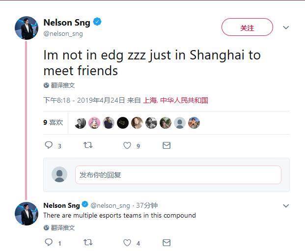 “我没有加入EDG,只是来上海看朋友的,这片区域有好多电竞俱乐部啊。”