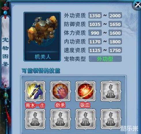 神雕侠侣手游机关人属性技能是小编为大家带来的,机关人,外功型宠物,除了在宠物迷城,你还可以在百花幽谷遇到它。下面和小编一起来了解一下吧。