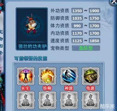 神雕侠侣手游强壮的功夫驴属性技能是小编为大家带来的,强壮的功夫驴,血防型,武功高强的驴子,虽然表面傻乎乎的。下面和小编一起来了解一下吧。