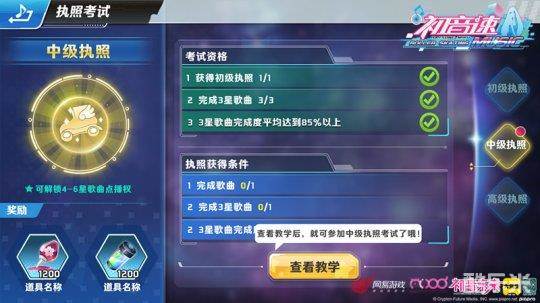 执照系统也是这次新增的一个内容,玩家对局相关数据达到一定条件后,可以参加对应的执照考试,执照考试分初级、中级、高级3个阶段。考试通过可以获得更高级歌曲解锁权限,挑战更高难度的歌曲,接触新的障碍种类。