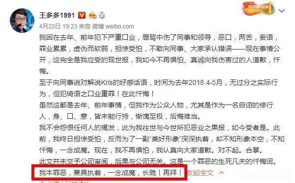 在英雄联盟里面的解说里面,王多多虽然毕业于名牌大学,但是人气却并不是最高的,但是前一段时间发生的一件事情却将他推向了风口浪尖,具体经过想必关注英雄联盟周边新闻的召唤师都已经了解的差不多了,这里就不再赘叙,反正目前的结果就是王多多承认了所有的事情,并且进行了道歉,最后说自己罪孽深重,一念成魔!