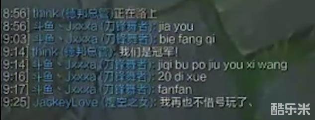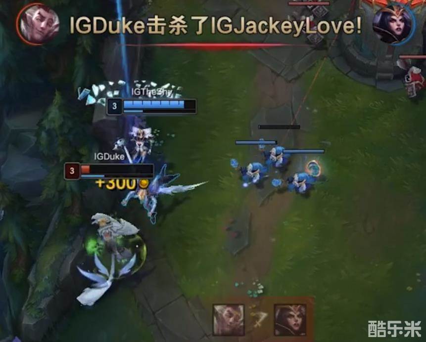 最有趣的是,在这场IG冠军皮肤的首秀直播中,他们二人使用的全都是自己的冠军皮肤,还带着自己的ID,队友看到ID知道这是IG下路组合之后便给他们俩加油鼓劲,没想到阿水发现自己被路人认出来之后完全不好意思承认自己就是Jackeylove!