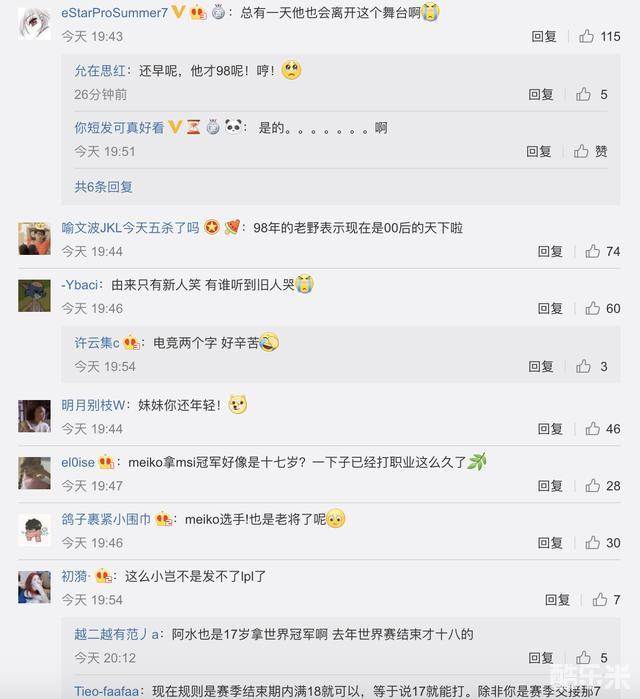 还有网友表示“meiko拿msi冠军好像是十七岁?一下子已经打职业这么久了,不知不觉meiko选手也是老将了呢,现在好像除辅助外,LPL所有位置都有登场过的00后了吧,更些迭代有点快啊...”