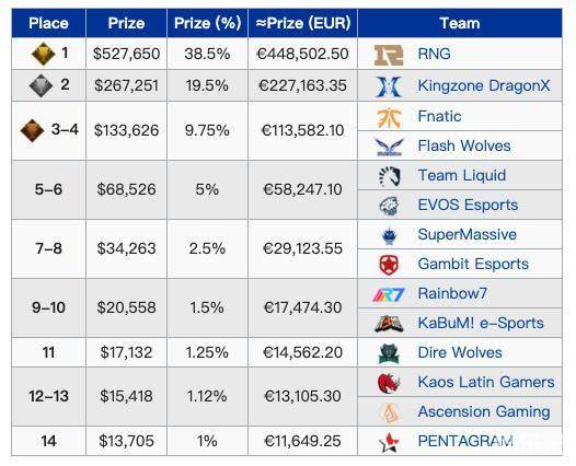 这也是在历届所有的MSI赛事中奖金最高的一次,2015年EDG的冠军奖金是10万美元,2016年SKT的奖金是25万美元。