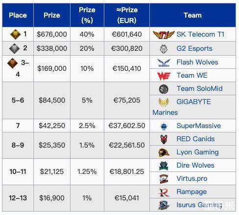 当然这样的奖金分配模式与2017年是完全一样的,因为2017年的时候,MSI的参赛队伍也是13支,SKT当时在夺得冠军后,也是斩获了67万美元,约合人民币455多万。