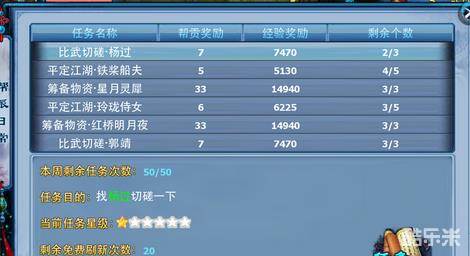 这个任务要求玩家去完成神雕门下任务,并且要对应任务给出的星级,经验、帮贡给的最多,但要求条件太多,一般非常难完成,不建议接取这类任务。