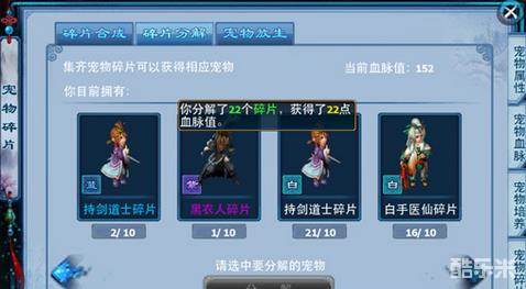 分解宠物碎片和放生宠物都可以获得血脉,碎片的数量和获得的血脉相等,级别越高的宠物放生后获得的血脉越多。