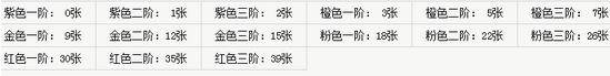 紫色侠客进化(表中数字代表从紫色一阶进化到该阶级所需侠客数)