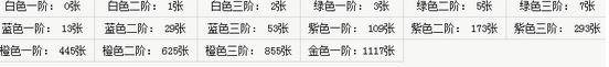 蓝色侠客进化(表中数字代表从蓝色一阶进化到该阶级所需侠客数)