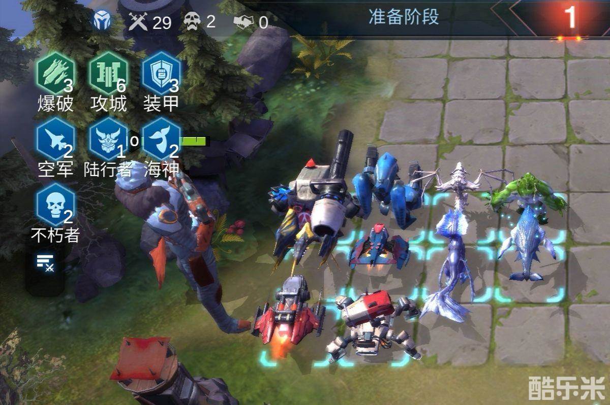 中期大概是13回合到23回合,在中期的时候我们就要凑出3爆破3装甲3攻城2空军的羁绊了,就是铁狗、铁猿、投石车、轰炸机、空蟹、方舟(翔龙、古龙也行),这个样子的我们在中期是比较强的,无论是持续输出、爆发输出、控制、抗揍能力、都是极为优秀的。
