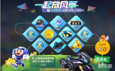 这款活动从4月26日持续到5月9日,只要放飞9次风筝就可以获得天浪的15天体验了。除了天浪外的其余奖励也是非常诱人的,能量水晶、涩会人车牌、星星印记等,尤其是比较难以获取的酷币奖励简直超值到爆。经过本人使用计算器精确计算总计可以获得864酷币,在获得天浪的同时离换取绯红尖峰又近了一步,简直不要太开心。