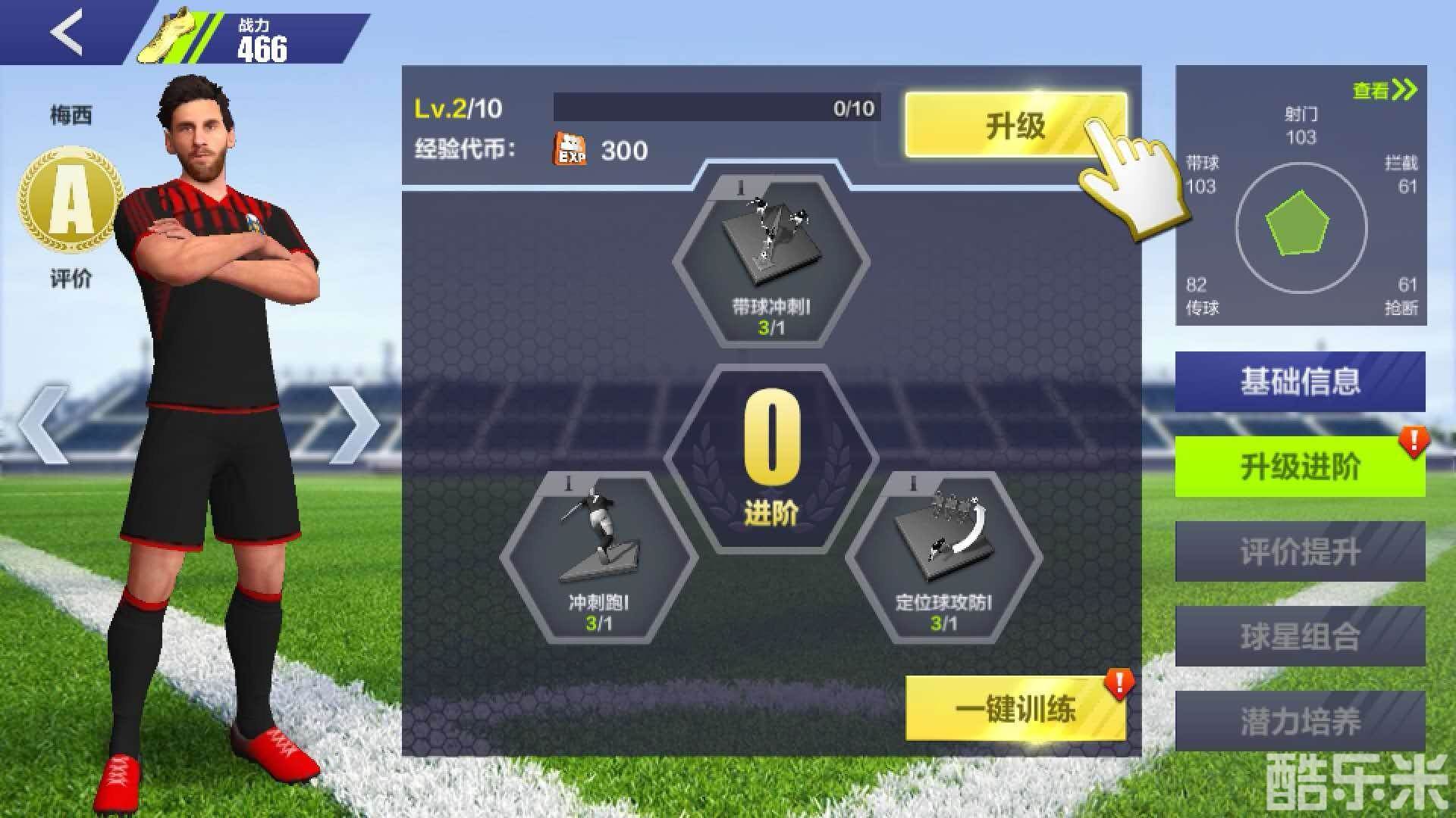 球队初始所配的梅西能力并不强,需要玩家不断提升梅西的经验和技能来增加梅西的战力,而通过俄罗斯之路便是最快的方法,可以升级、进阶、训练你喜爱的球员,从而提升你球队的综合作战能力。