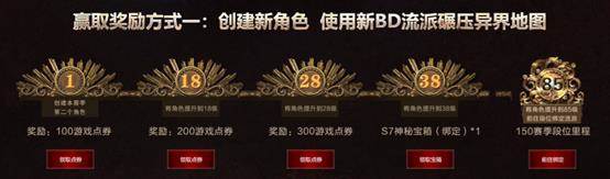 新角色达到对应等级即可领取600游戏点券以及一个神秘宝箱,更可以继续成长完成赛季段位的挑战和领取相应的奖励,成为流放大师。仅限本赛季登录过的流放者可以参加。