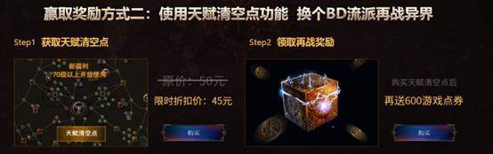 新功能上线享限时折扣,仅售45元!70级以上玩家购买天赋清空点,还能领取再战礼包一份,内含600游戏点券。