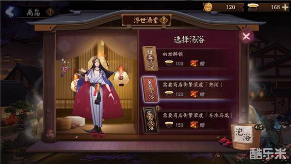 阴阳师们每天有5次免费泡澡的机会。泡澡的汤浴有三个等级,随商店街的繁荣度提升逐渐解锁。汤浴等级越高,可恢复的活力值越高,同时泡澡所需冷却时间越长。同时,也可使用勾玉购买活力值。