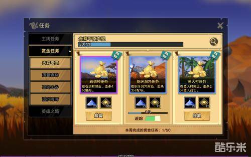 每次最多可以接受3个赏金任务哦~不同的任务之间如果要求类似的话,是可以叠加完成的(如任务1要求击杀野猪,任务2要求击杀任意怪物,两个任务则可同时获得计数或完成)